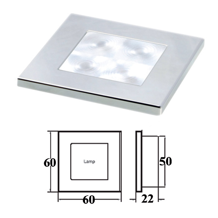 Светильник для подсветки палуб и трапов светодиодный 60х60мм, хром.корпус Артикул: 1545